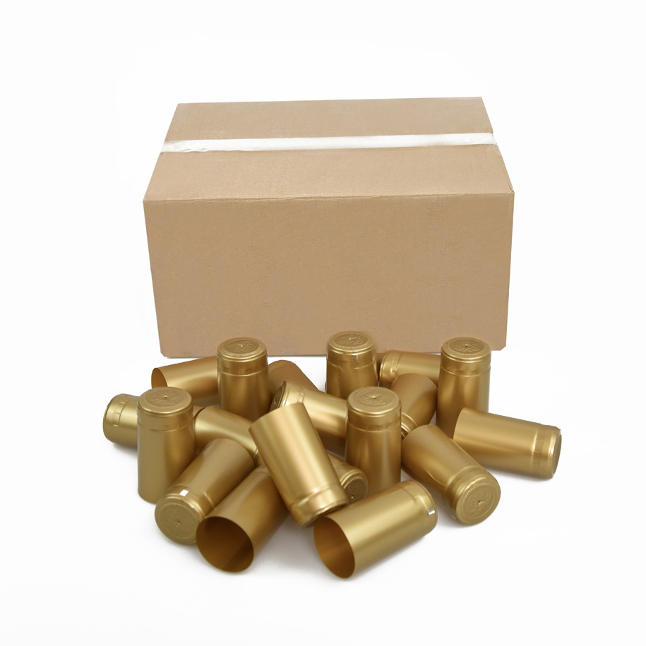 Termokapsulės vyno buteliams AUKSINĖS 1000 vnt. Įmerkus į verdantį vandenį, pakaitinus virš karštų garų ar fenu susitraukia.
